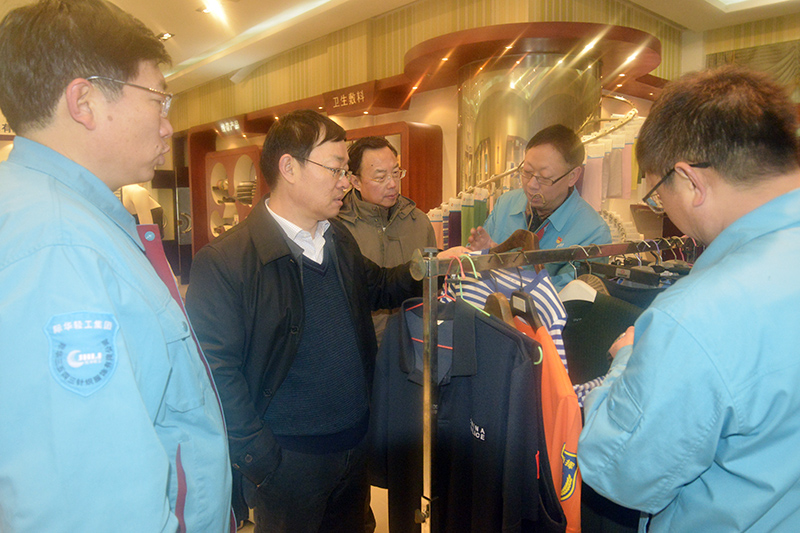 张同波一行走访调研了服饰车间、线带车间、缝纫一车间、面料事业部和仓储部等,详细了解了吊挂线生产控制系统运行情况、技术水平及运用情况等,并听取了际华3543公司工作汇报,对2018年工作表示肯定,对公司工作提出了希望和要求。