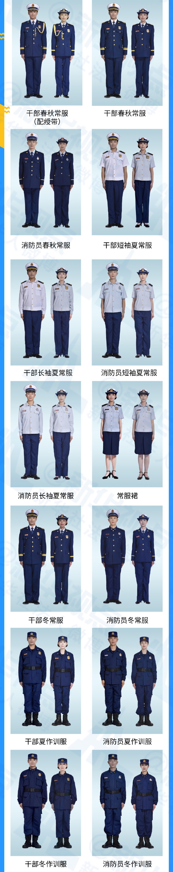 新式消防制服样式 2018年武警部队和国家部委改革后,原武警消防部队成建制划归应急管理部,设立消防救援局。为充分展现应急消防救援队伍转隶后的新要求、新形象、新风貌,消防救援局启动了消防救援队伍全体换装工作。此次换装工作对承接单位的整体产能、生产组织、技术实力以及政治意识等是一次全面考验。承接任务后,际华集团领导高度重视,始终作为一项特殊的政治任务来对待,专门成立领导小组,由集团主要领导任组长,制定专项保障实施方案,设立分类保障工作组:营销项目保障组、研发设计和技术保障组、原材料保障组、生产管控协调保障组、质量督导保障组、售后服务组,集团与各生产企业签订任务承诺书,明确职责与考核措施。各保障工作组和生产企业依据职责分工,认真抓实工作,确保生产任务在各重要环节如期衔接按期完成。同时,际华集团加强管理,严把质量,在集团层面成立质量巡回检查组对产品质量进行督查,向各企业派驻厂质量代表,加大质量监控力度,并实行产量日报制度,实时监控生产进度,各项措施的落实使得生产任务稳步推进。