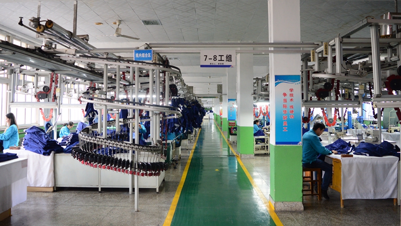 5302公司生产现场 际华5302公司的党员和劳模面对产品的新工艺、新要求,在没有经验可以借鉴的情况下,带领车间班组成员认真学习、反复试验、不断摸索,自制小工具解决生产中的技术难题,在制定大流水作业工艺中,减少了多余的动作,缩短了生产时间,提高了劳动效率。全体生产员工表现出了强烈的主人翁意识,甚至已经退休的员工也主动留了下来,在连续加班加点的情况下,大家都能从大局出发,根据生产进度安排,保质保量地完成各自工序生产要求。