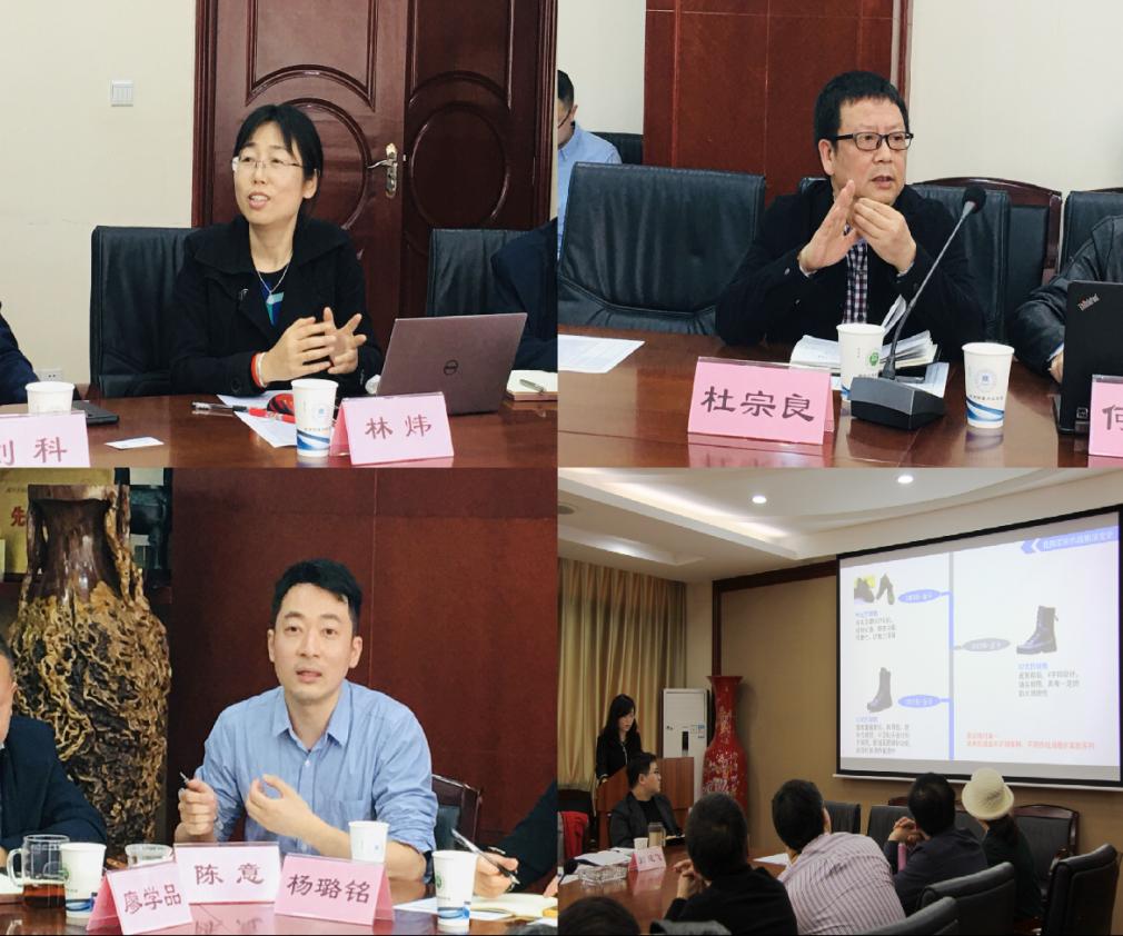 生物质与皮革工程系林炜主任就生态皮革互联网+项目进行介绍,纺研所杜宗良所长、陈意教授分别就实验室近年开展相关产业化工作进行介绍,杨璐铭副教授分别从六大方面向与会人员做了“军用作战靴功能测试平台搭建”会议报告。