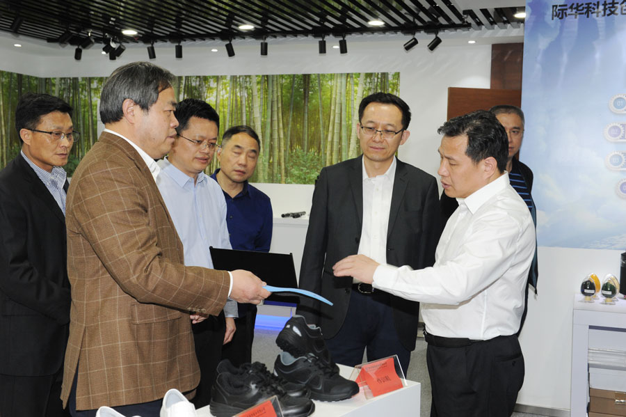段银海对蚌埠市郭鹏副市长及丰原集团李荣杰董事长一行表示热烈的欢迎。他指出,际华集团正不遗余力打造机制灵活、运转高效的研发平台,积极承接社会各类创新资源转移、科研成果应用性研究及转化。未来希望双方增强双向互动,力争在生物基新材料上有所突破,通过通力合作,培育核心竞争力,建立全过程、跟踪式、零距离的科研服务系统,共同打造企业合作科研的样板和典范。
