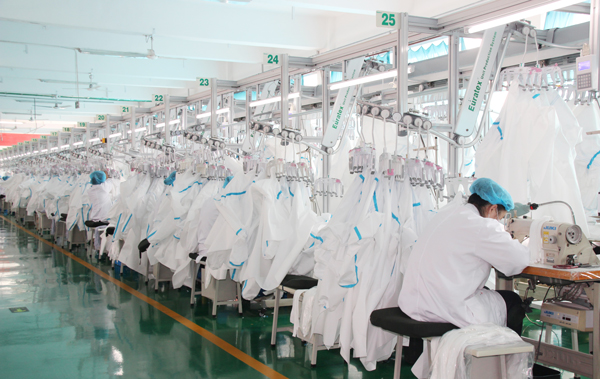在新冠肺炎疫情防控中,公司紧急转产生产防护用品,广大女职工接到指令后,迅速回到工作岗位,全力投入生产,早出晚归、加班加点、班组轮换、人停机不停,把抗击疫情一线当成淬炼初心、践行使命的火线,尽显担当本色,成衣车间技术员阚晓兰作为女职工的杰出代表,以优异的工作成绩获得“全国抗击新冠肺炎疫情先进个人”荣誉称号。