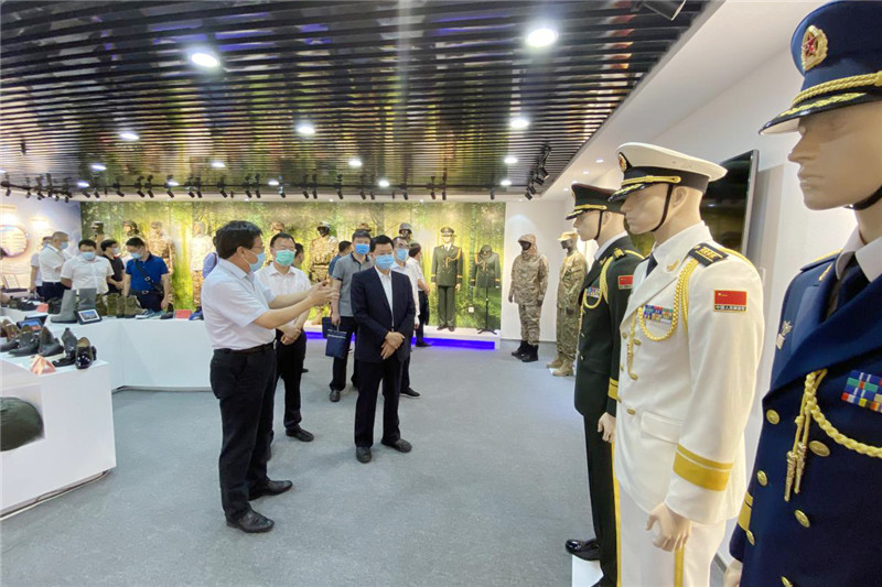 马建平一行参观了际华股份展厅并听取了际华股份关于巩固建设中国最大的军需品生产保障基地的相关情况介绍。