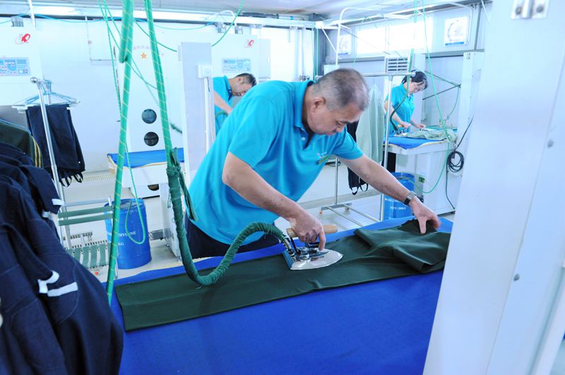 际华集团3502、3534员工在阅兵村洗衣房忙碌