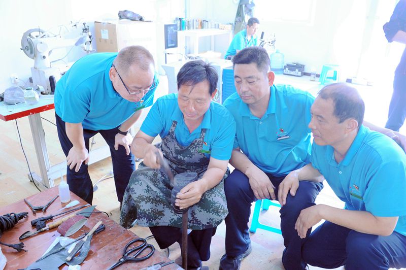 鞋靴保养组际华3514公司赵新平、赵建平两兄弟在工作
