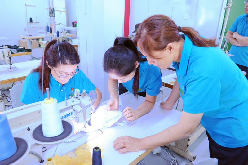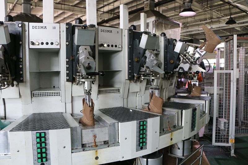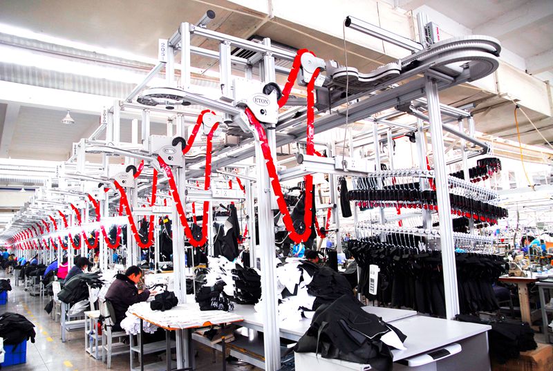 在生产组织中,际华集团使用了大量的模板和运模机,保证了服装同一部位制作统一。际华3502公司一分厂使用了勾前门模板和自动运模机,以前需要4个人完成的工序,现在一个人可以操作左右两台自动运模机。同时,集团近年来先后引进的服装全智能吊挂生产线、双密度鞋靴DESMA智能生产线等先进设备和智能设备发挥了重要作用。自动锁眼机比之前的机器每锁一个扣眼提高了2—3秒;智能吊挂线电脑监控所有裁片的投放和制作流程,更科学高效。