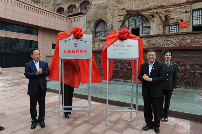 2019年9月10日新兴际华集团党委书记、董事长张雅林和志丹县委书记李建强共同为新兴际华集团红色教育基地和三五一三厂原址揭牌