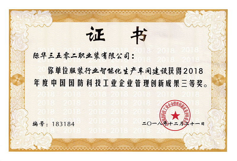 近日,际华3502公司的《服装行业智能化生产车间建设》项目,在2019年国防科技工业企业管理创新会议上,获得2018年度国防科技工业管理创新成果三等奖。