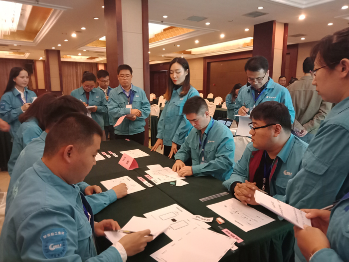本次决赛分为精益理论知识笔试和实际操作两部分。笔试包括选择、填空、简答、论述题等题型。实际操作以七大浪费、5S 管理和现场安全管理为主要内容,通过观看图片、选手分组操作规定项目等形式,大家密切配合、相互协作,现场气氛热烈。爱波瑞集团顾问老师在赛后针对此次竞赛内容进行了讲解和点评。