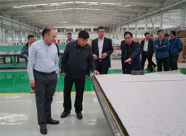 奚国华一行来到刚搬迁到兰州新区的际华3512公司厂房,参观了车间生产流水线、新产品研发中心、产品陈列室,详细调研生产经营、现场提升、产品研发等工作开展情况。际华3512公司党委书记段银海、总经理张亚军分别就结构调整、内部管理、提质增效等方面工作进行专题汇报。