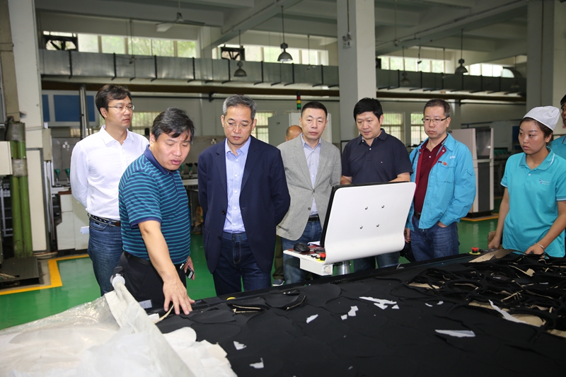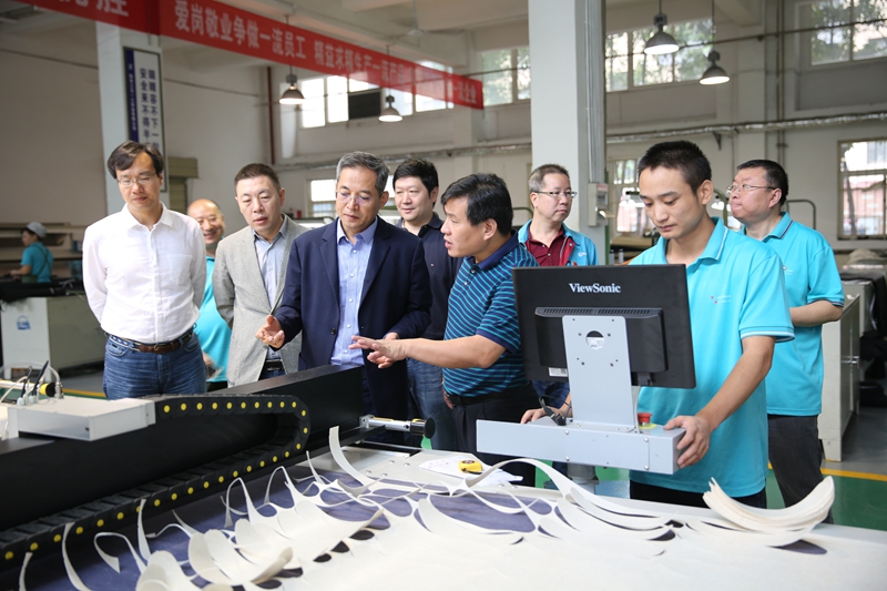李学成和郭福军还视察了该公司新引进的皮革智能载床、新一代皮革智能排版系统、PU革智能裁床、激光切割机等设备,并对该公司近几年在生产设备智能化升级改造方面作出的成绩给予了积极评价。李学成还听取了公司经营指标完成情况,并对公司下一步工作作出指导。