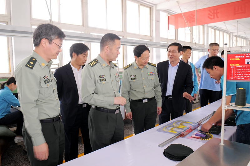 中央军委后勤保障部军需能源局被装处处长侯晓明、际华集团总经理韩文虎一行对际华3506公司夏常服帽生产情况进行检查