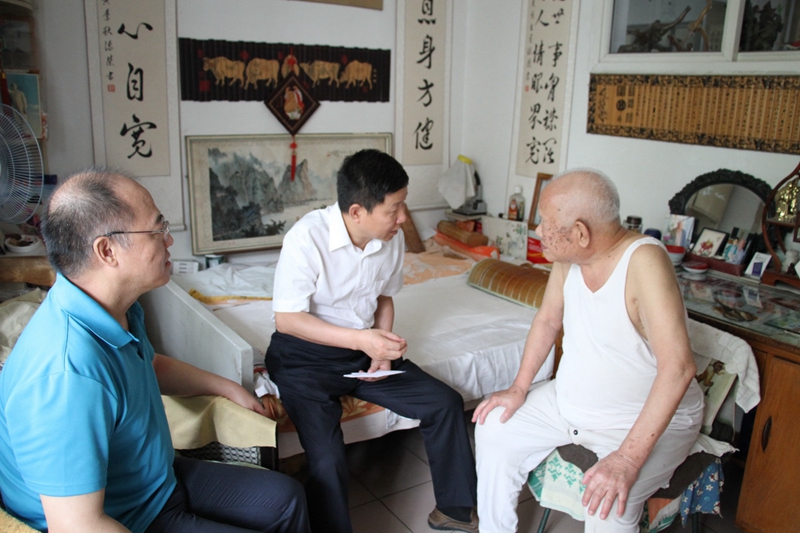 本次调研正值七一前夕,何可人代表集团党委前去探望了际华3514公司退休老党员、现年95岁的刘桂茂,并送去了慰问金。