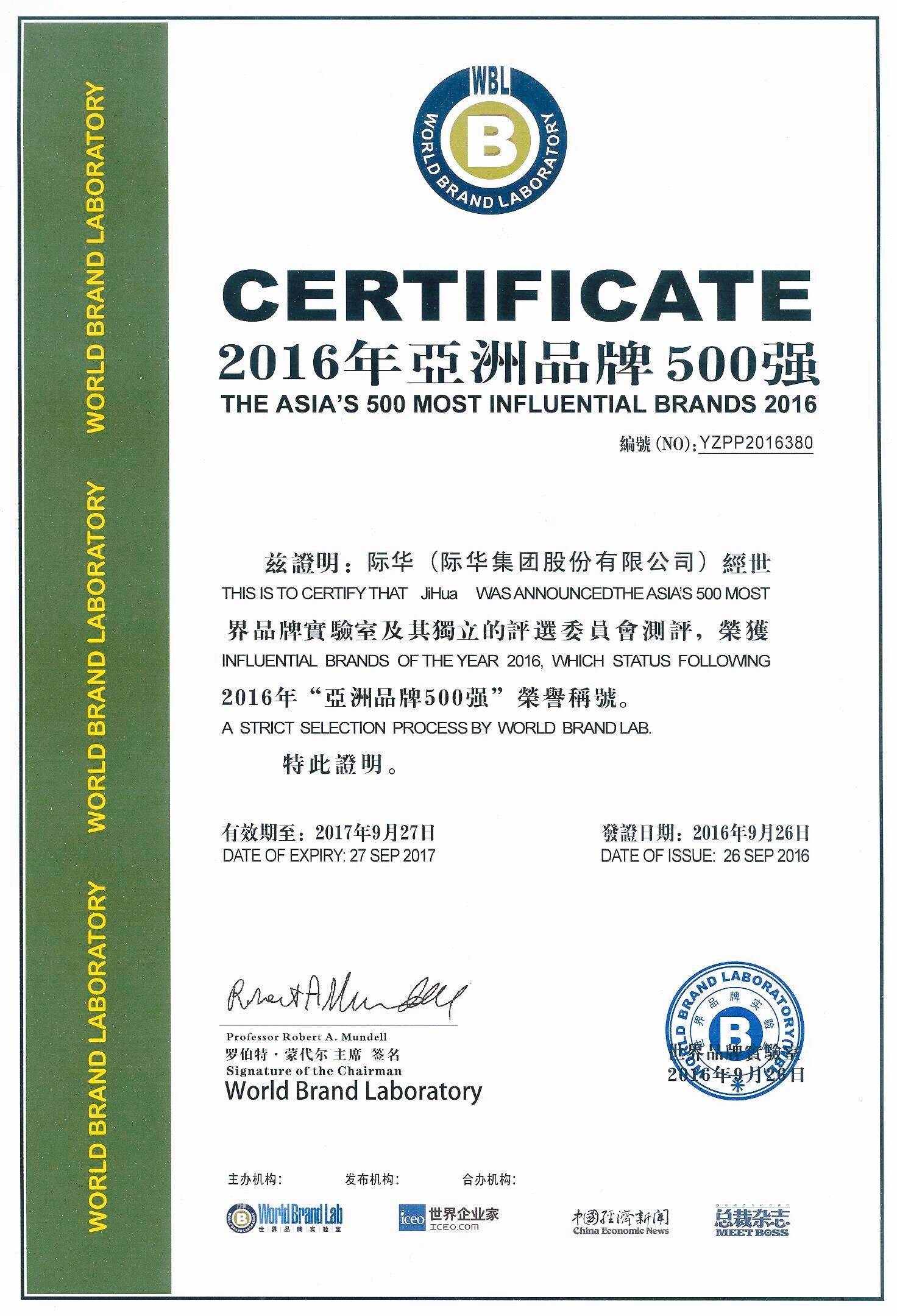 际华集团再次入选《亚洲品牌500强》表明,际华集团作为中国最强最大的军需品保障基地、职业装及职业鞋靴生产和研发基地,已经在亚洲范围内具有较强的品牌知名度和美誉度。世界品牌实验室在2016年(第十一届)《亚洲品牌500强》分析报告中认为“际华集团股份有限公司作为上市央企,品牌建设工作成果丰硕,在保持传统品牌与时俱进的基础之上,隆重推出旅游地产品牌‘际华园’,时尚轻奢服装品牌‘JH1912’,高端定制品牌‘圣度’等。因其在品牌建设方面的出色表现,际华集团股份有限公司的集团品牌‘际华’被评为表现最佳品牌。”