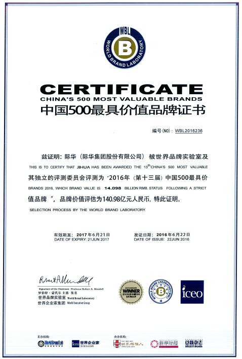 6月22日,由世界品牌实验室(World Brand Lab)主办的第十三届“世界品牌大会”在北京隆重召开。会上,正式发布了2016年《中国500最具价值品牌》排行榜。际华集团以品牌价值140.98亿元首度入榜,位列“中国500最具价值品牌”榜第236位。