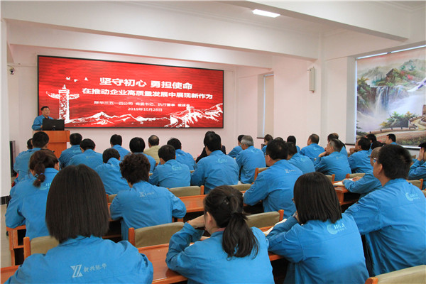 为扎实推进“不忘初心、牢记使命”主题教育,10月28日,际华3514公司党委书记、执行董事霍建春为中层以上党员干部讲授了一堂党课。国资委第二巡回指导组成员李宜丰,际华集团指导组滕连越、李忠良到会指导。