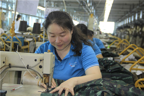 能生产阅兵服任务既是公司技术实力的体现,也是武警部队对公司的信任,更是一种巨大的荣誉和责任。产品质量关系到军威和国家形象。为确保件件是精品,公司集合曾获得过“全国五一巾帼奖状”等四项全国奖牌的B601/2班组的骨干组成制作小组进行专门生产,从工艺技术、裁剪制作到服装整烫、包装等各道工序,全部有专人负责进行全过程质量监控。特殊的材料、特殊的工艺、特殊的质量要求,每一针、每一线都关系到产品的质量和美观。在生产过程中,员工们承担着巨大的生产压力,为保证裤侧袋平整,班组用模板将袋盖勾好后进行翻烫,然后再用双针特种设备压到裤侧袋上。技术处跟线指导,针对重点工序、难点工艺,手把手地教缝纫工操作。组长尹贵兰身患贫血,脸部皮肤出现过敏感染的情况下,始终坚持在岗位上。预备党员毛可香每天来的最早,走的最迟,发挥自己技术全面的优势,做到了“哪里有缺那里顶”。江苏省劳模谢秀荣和班组长反复磨练调整工艺、制作模板,和一线职工加班加点,在大家的共同努力下,武警反恐突击方队阅兵服在规定时间内圆满完成,按期分发到受阅武警部队。