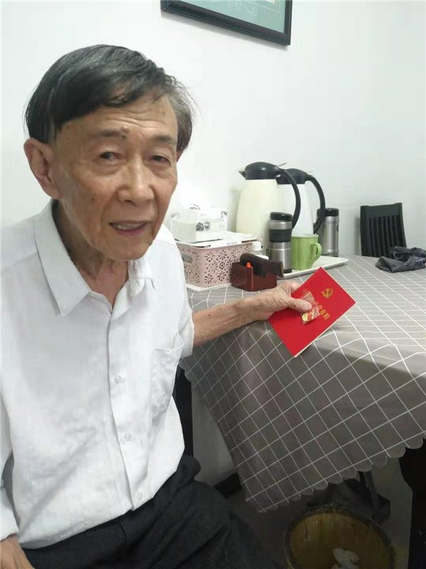 1949年9月加入党组织的张玉田老人今年89岁了,他精神矍铄,一定要把党徽佩戴起来拍个纪念照片。离休干部曹修山老人年年逾九旬,他说“党章修改了,我们要学习,活到老学到老,全国楷模张富清就是我们老同志学习的好榜样!”建国前就入党的安茂富老人手摸党章和党徽久久不忍放手;新四军老战士朱从山一拿到党徽就赶紧佩戴在胸前。