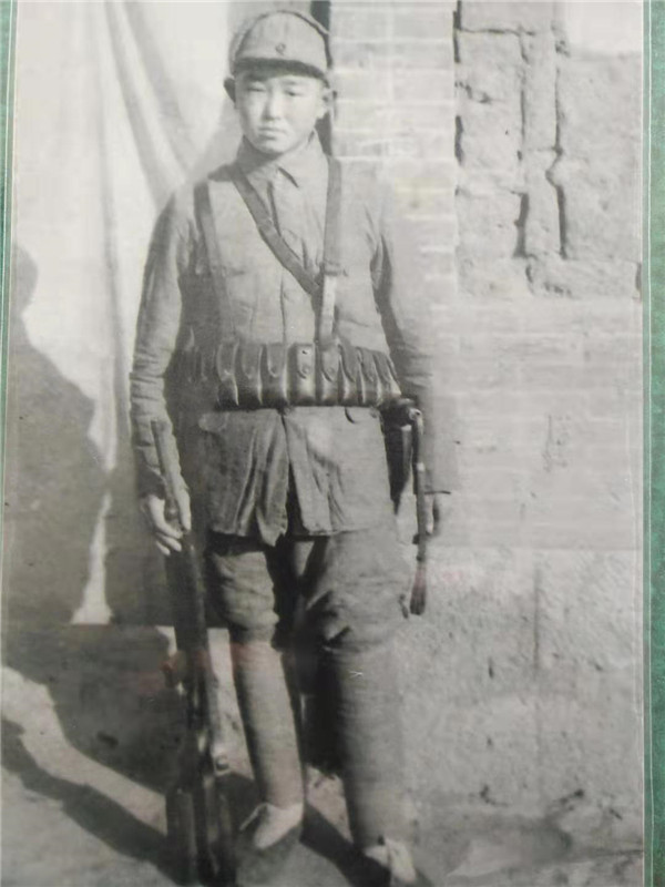 “不忘初心、牢记使命!”离休干部徐长忠在看到党章和党徽时脱口而出。刚染疾恙卧床休息的徐老非要坚持坐起来下床接住党委负责人送来的政治礼物。徐老饱含深情地说 “我的党太不容易了,我们的国家太不容易了,习总书记太不容易了!我耳朵聋了,听不清,但是我坚持学习上网看新闻,美帝国主义亡我之心不死,我们要团结起来打败它!”一张70多年前的徐老老照片吸引了我们。那时的徐老右手扶步枪、左斜挎手枪,腰上挂满了子弹夹,灰色军帽整齐的绑腿,齐刷刷一个青年威武英雄!徐老介绍说“1947年4月在与敌军拉锯战,我是突击队员,当时渤海纵队政治部干事下连队,给我们几个队员拍的,战斗马上就要打响了。现在看来这张照片是有历史感。其实也是就是生命照、纪念遗照。谁知道打仗时是死是活?一仗下来,死伤多少啊!我的许多战友命早都没了,也可能就是给家庭的一个纪念吧”
