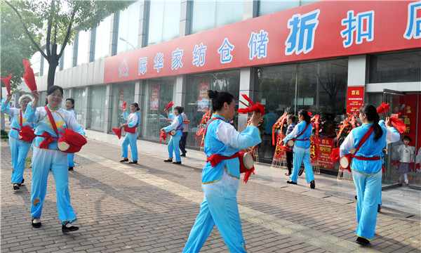 5月18日,际华家纺仓储折扣店火爆开业。鲜艳的大幅标语,热闹的腰鼓表演,整场开业典礼热闹而隆重。际华3542公司纪委书记曾伟良、总会计师邱国春、副总经理张泽扬、彭志龙出席剪彩仪式。
