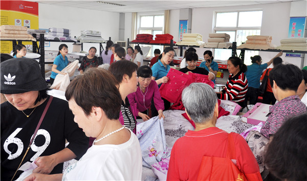 折扣店主要推出的产品有全棉印花系列、磨毛系列、贡缎小提花系列、全棉绣花系列、婚庆系列以及外贸莫代尔、竹纤维、天丝单品系列等,品种齐全,价格优惠。大批顾客涌进店内,挑选满意的商品,展现出际华家纺在广大消费者中的良好口碑。今后,际华3542公司将继续致力生产品质优良的际华家纺,回馈广大消费者的厚爱。