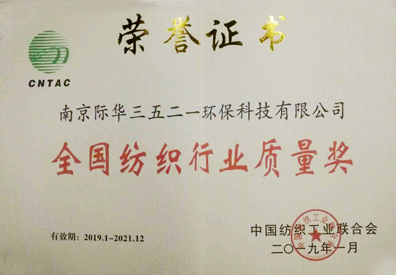际华3521荣获“全国纺织行业质量奖”荣誉称号