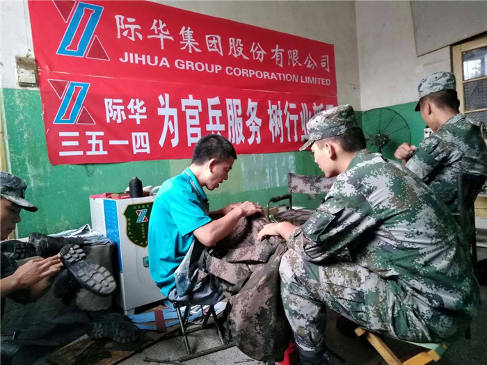 为部队服务没有最好,只有更好。龚建微部长常说“将工作当成艺术来干,疲劳就会减轻很多”。每到一处,3514售后服务现场送修官兵络绎不绝,这种备受欢迎的场面就意味着维修强度和工作时长都会增加。天热加之劳动强度大,服务人员出现腰疼、感冒等症状,但只要是送来的鞋子没有说不能修的,他们从不挑肥拣瘦,专注工作的师傅们此刻化作鞋靴美容师,鞋子从破旧不堪到完好锃亮,战士们拿回手中,争相叫好、连连夸赞。维修师傅一针一线修复的“工艺品”,也正代表着他们走到哪里发扬到哪里的工匠精神。服务人员还深入部队驻训点,在军营帐篷展开维修服务,并主动承担起力所能及的其他维修工作,与兄弟单位互帮互助,充分体现了际华集团团结协作、锐意进取的精神意志。姓军为兵履使命