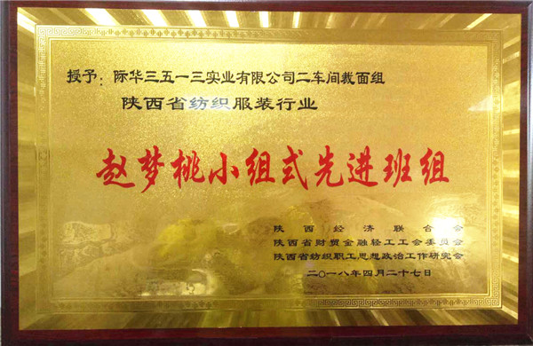 近日,纪念赵梦桃小组命名55周年暨“赵梦桃小组式先进班组”“梦桃式最美职工”推介大会在咸阳市新兴纺织工业园举行。际华3513公司二车间裁面组荣获“赵梦桃小组式先进班组”。