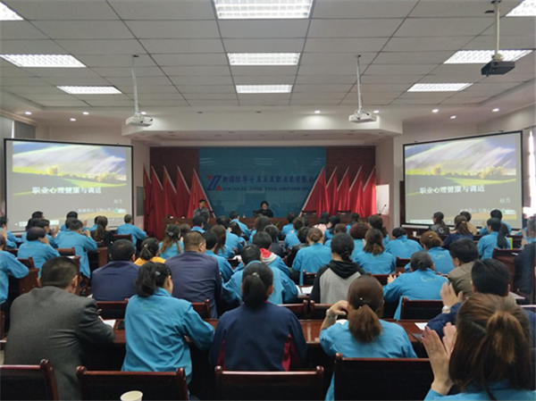 在这样快节奏的时代,每个人都或多或少存在着某种压力。那么如何缓解压力,如何释放自己,成为自己应该有的样子,是我们众多人心中的困惑。心理健康是幸福的源泉也是生活的财富。在现代社会人们越来越认识到心理健康的重要性。但是,人们对心理健康的概念、心理健康的标志及对心理健康的理解还缺乏科学的认识。为了培养新疆际华7555公司员工良好的心理素质,缓解工作压力,激发员工工作热情,促进公司健康科学发展,4月21日,新疆际华7555公司举办员工职业心理健康与调适讲座,该公司110余名管理干部参加了此次讲座。