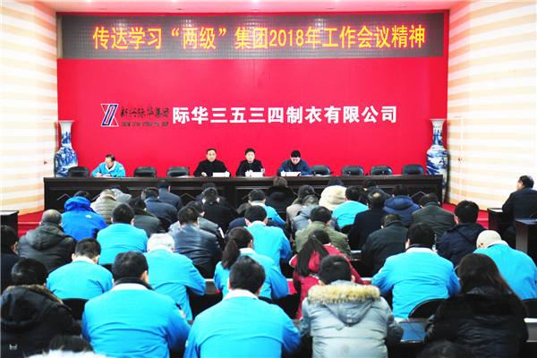 赵志坚传达学习了新兴际华集团公司总经理杨彬在2018年工作会议上《调结构 补短板 抓改革 强创新 努力打造世界一流多元跨国集团》的讲话精神及际华股份总经理、党委副书记袁海黎在2018年工作会议上《改革创新 锐意进取 扎实苦干 不断增强际华集团可持续发展的核心竞争力 》的讲话精神。他指出,2018年是集团公司提出的现场管理年,全体干部要带头实践,以两级集团工作会议精神为指引,聚焦公司打造世界一流智能制造强企目标,聚焦公司2018年预算目标,强基固本抓管理,创新创优求实效,提质增效促发展。