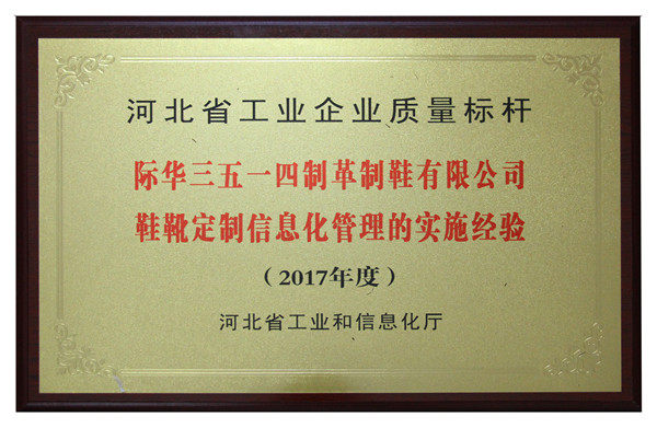 12月15日,由河北省工业和信息化厅主办、河北省质量协会承办的2017年河北省工业企业质量品牌建设经验交流会在石家庄召开。“际华三五一四制革制鞋有限公司鞋靴定制信息化管理的实施经验”成功入选2017年河北省质量标杆名单,际华3514公司副总经理贾建平参会并现场领奖。
