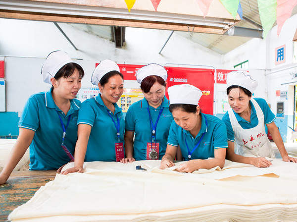 因修布工序的特殊性,需要两人搭档完成坯布的修整,一天的生产任务均在3000多米以上,但参赛选手,每天需要抽出1个小时进行练兵和测评。一名员工怎样修织坯布?这个难题困扰不了员工们,测评的时间里,选手们的搭档在修整中,抬布有人扶,发布有人顶,整布有人帮,返修有人修……处处都是相互帮扶的温暖场景。参赛选手面对强大的亲友团,全身心的投入到练兵中,饱含高昂的斗志迎接挑战。众人拾柴火焰高,整理车间上下齐心,征战沙场,凯旋归来,掌声和鲜花更应该送给那些默默无闻的幕后英雄。
