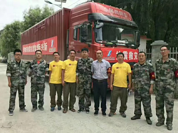 接到集团公司统一调度指挥,际华3537公司积极组织一批帐篷、睡袋,于8月9日晚12点连夜开始装车,由唐军带队押货,蔡亮、彭刚两位司机轮流开车,三人于10日凌晨4点发车,前往震中——九寨沟,送去我们的爱心。