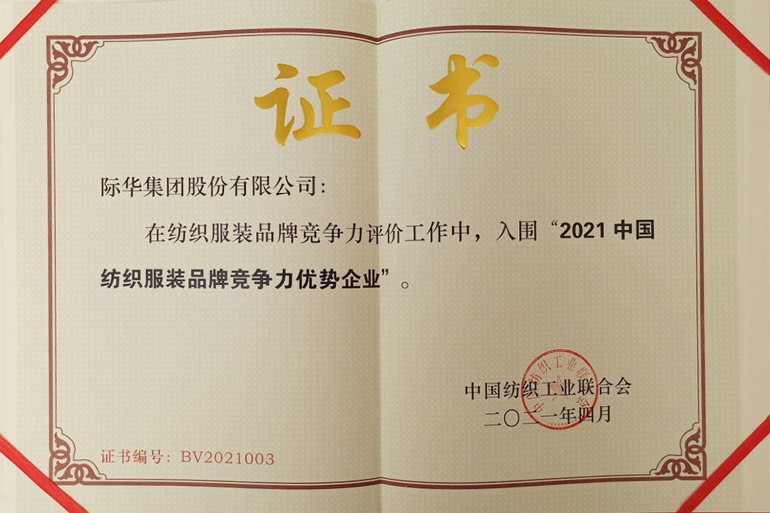 本次论坛发布了55家“2021中国纺织服装品牌竞争力优势企业”,际华股份正是获此荣誉的企业之一。这项称号是中国纺织工业联合会基于相关国际标准、国家标准,完善制定品牌价值评价体系,确立测算模型,通过自愿申报、系统评估后最终确定。