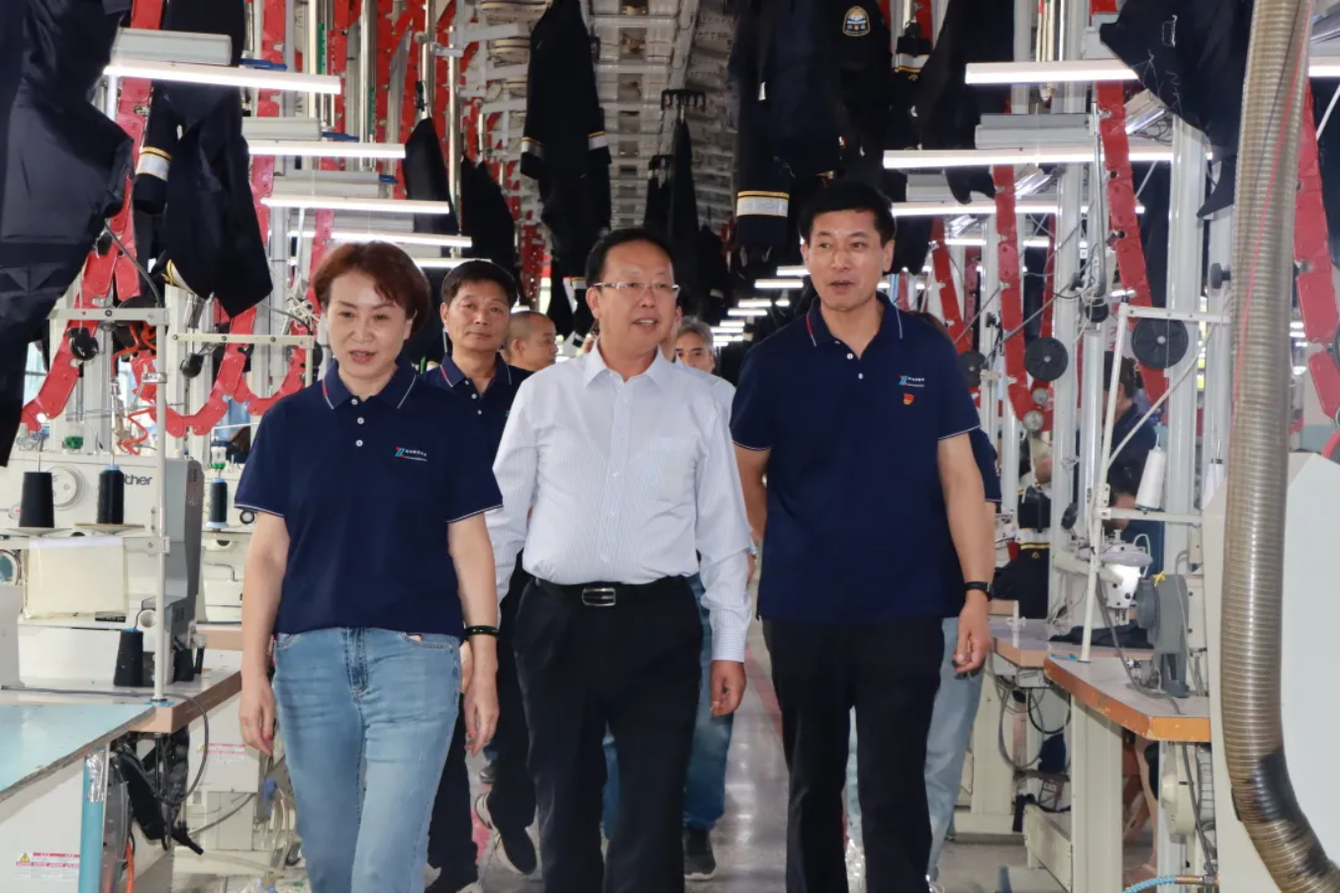 在际华7555公司,贾世瑞深入卫生防护车间、智能裁剪车间、缝制车间生产示范线、整烫包装车间现场考察调研,详细询问和了解车间生产组织、工艺流程和智能制造等情况,并不时与一线干部职工亲切交谈。他指出,要强化市场竞争意识,树立大市场观念,大力弘扬军需“四特精神”,勇闯市场不服输,用好援疆政策和带动就业优势,不断提升企业品牌影响力,争当新疆服装行业“链主”型企业,坚决做到守土有责;要加强柔性化生产组织管理,研究和搞好生产定位,推进设备智能化向产业专业化扩大升级,不断提升生产效能和效率;要提升自主研发和技术创新能力,加强定制化生产管理,打造具有实力的个性化品牌,确保企业可持续性发展;要提高经营质量,公司领导班子要解放思想、团结协作、勇于担当,始终把员工利益放在首位,让广大干部职工群众在共享改革发展成果中有更多获得感和幸福感。