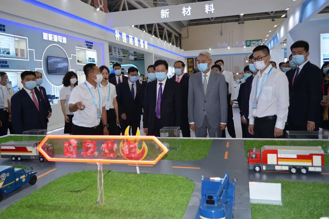 十三届全国政协副主席、中华全国工商业联合会主席、中国民间商会会长高云龙,甘肃省委书记、省人大常委会主任尹弘参观新兴际华展区