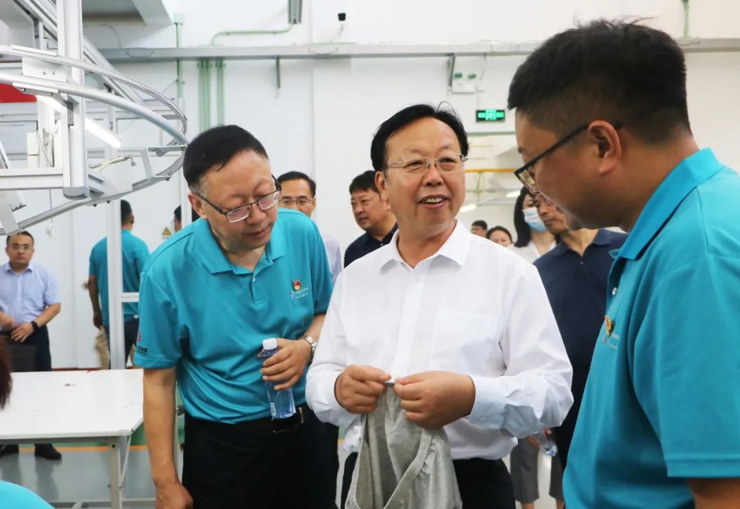贾世瑞一行深入生产一线,实地调研了际华3543公司服饰装具生产部、无菌车间、成衣生产部、面料生产部、科创中心、产品展厅,细致了解了具体研发项目、无菌车间应急产品生产过程、环思ERP智能生产线实施进度,对3543公司深入推进“三统一”所取得的成绩给予充分肯定。