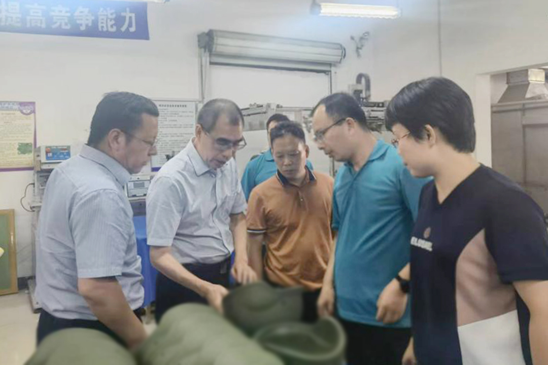 在际华3547公司,吴同兴一行深入公司车间现场、技术研发室、产品展厅,实地了解公司产品、产能设备、技术研发等情况,听取了公司生产经营工作汇报,并对3547公司落实“三统一”政策提出了四点要求和希望。