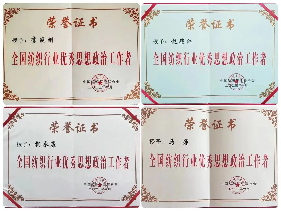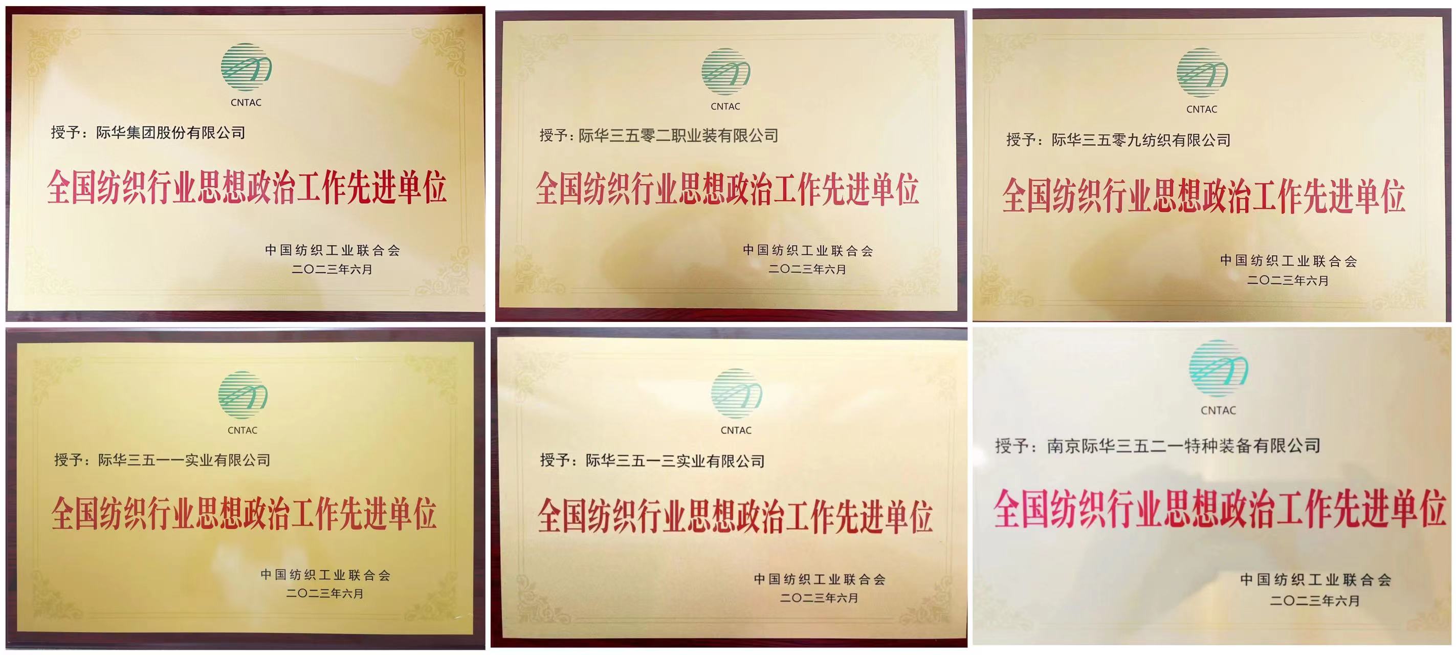 会上还表彰并命名了一批“全国纺织行业思想政治工作先进单位和优秀思想政治工作者”、“全国纺织行业党建工作先进单位”、“全国纺织劳动关系和谐企业”。际华股份本级被评为“全国纺织行业思想政治工作先进单位”,所属多家企业和个人也喜获表彰。